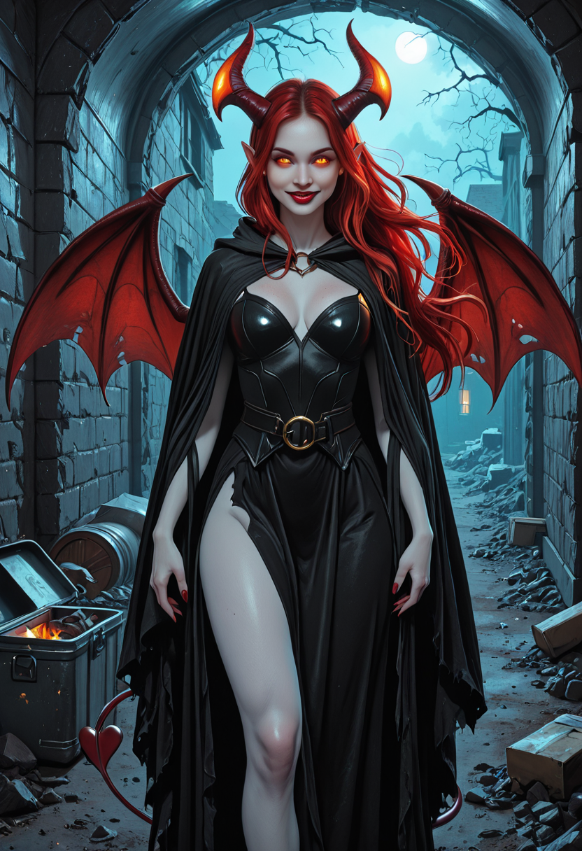 Sasha's mouth found his jaw, trailing heat down his neck while her fingers worked his clothing free. Midnight silk pressed between them, the authority threading somehow making her touch feel heavier. "You gave me her power," she breathed against his throat, "and now you're going to give me everything else." Her amber eyes fixed on his as she pressed him back against the cold metal wall, the lock clicking behind them. The promise she'd made at Yarra's booth was finally due.