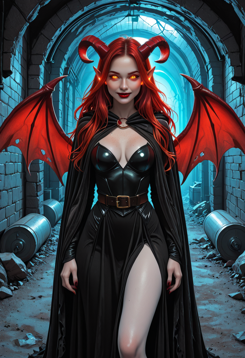 Sable's fingers worked at his fastenings with predatory efficiency, her body pressing slick friction against him as she pinned him harder into the wall. Her hand slipped past fabric, wrapping around flesh with possessive hunger while her teeth grazed his throat.