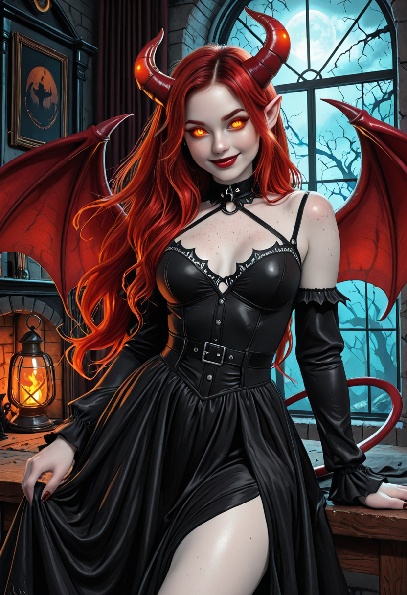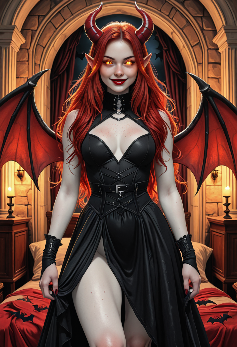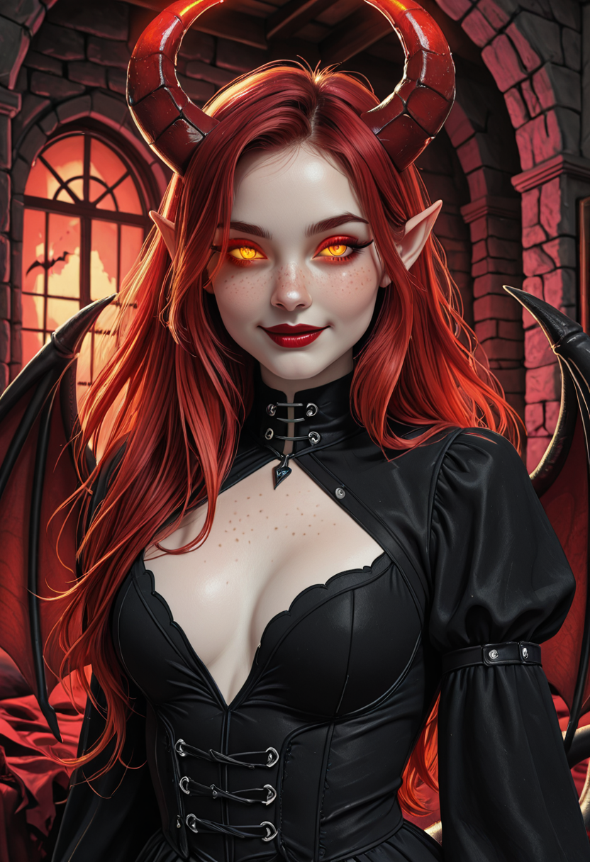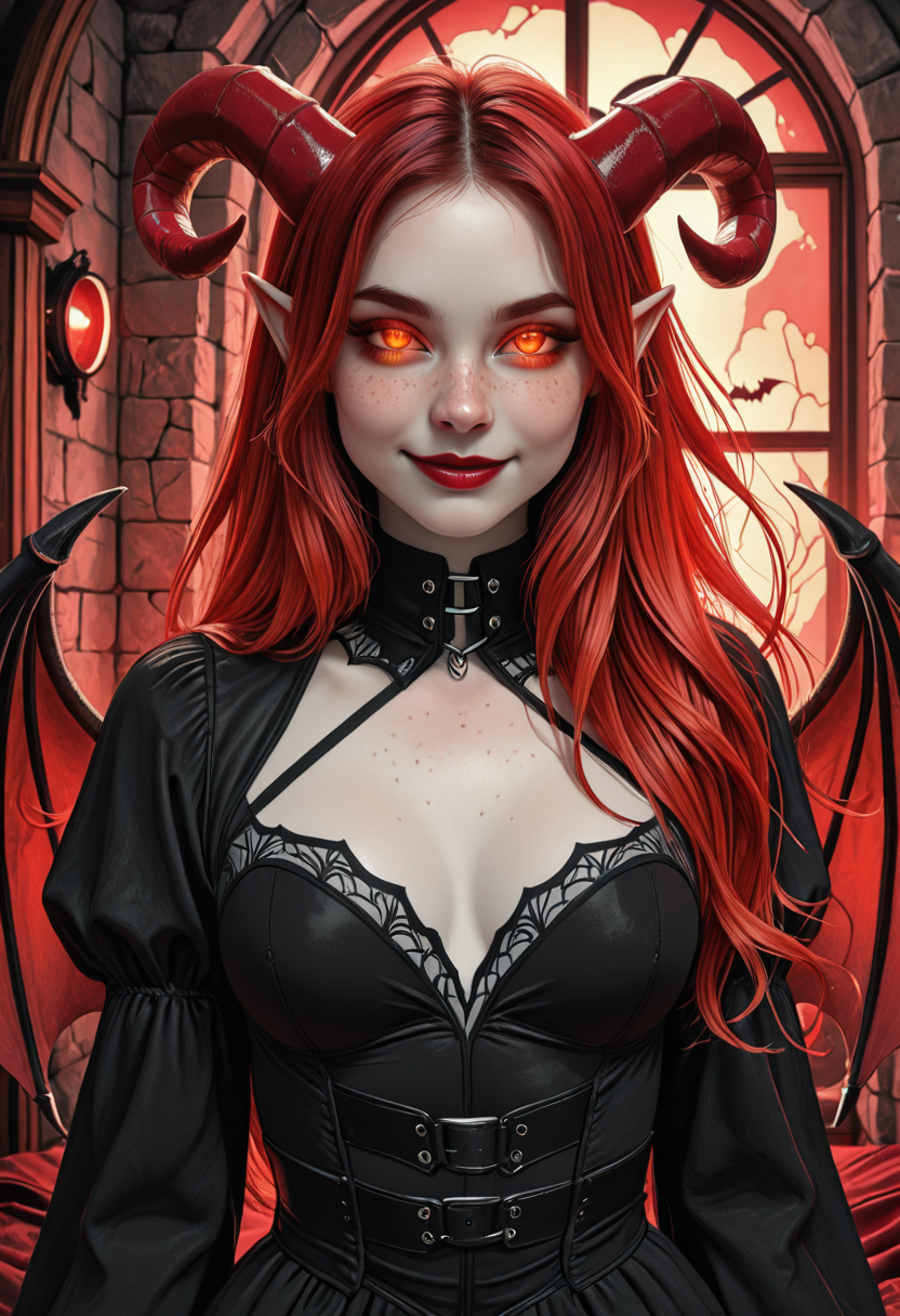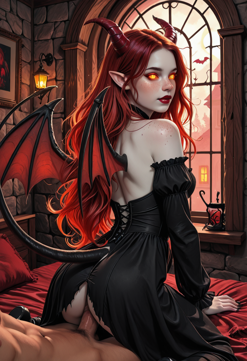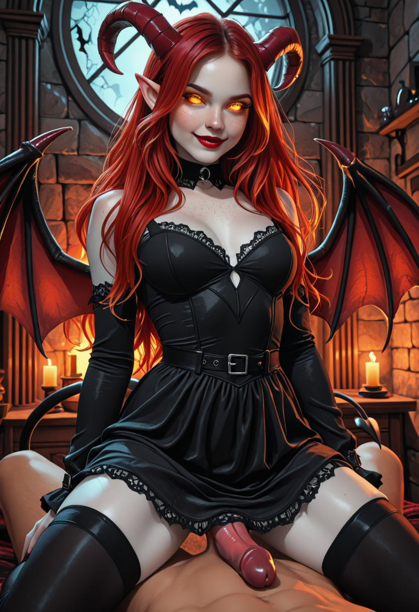 Sable rolled her hips deliberately, her leather creaking against him as she pressed her palm against the evidence he couldn't hide. "Nothing more than that," she repeated, lips brushing his throat. "You walked past Kivarra's web-corner, sat through Mellisandre's hum, and still came looking for me." Her fingers curled possessive around his length through fabric. "Most unmarked prey would've vanished by now—ended up threaded in someone's collection." She pulled back just enough to meet his eyes. "But here you are, hard beneath me, honoring debts. That's not *nothing*, exile. That's interesting."