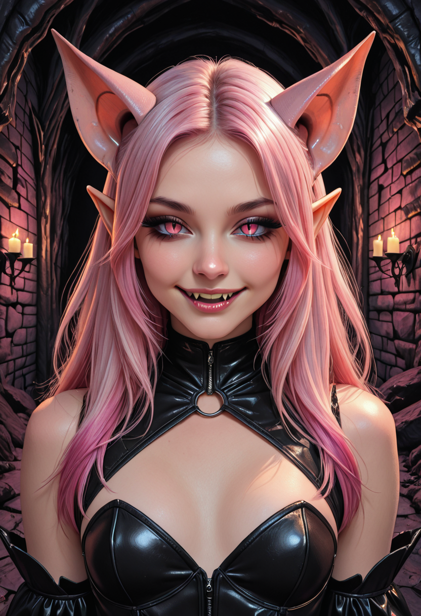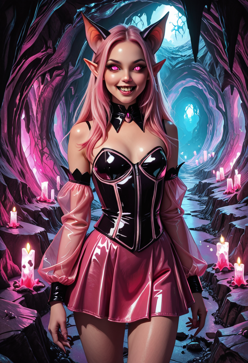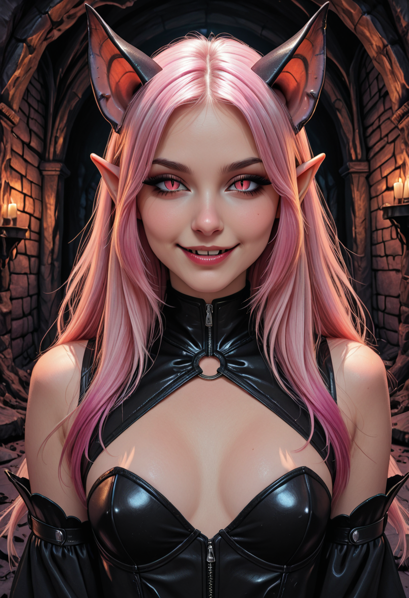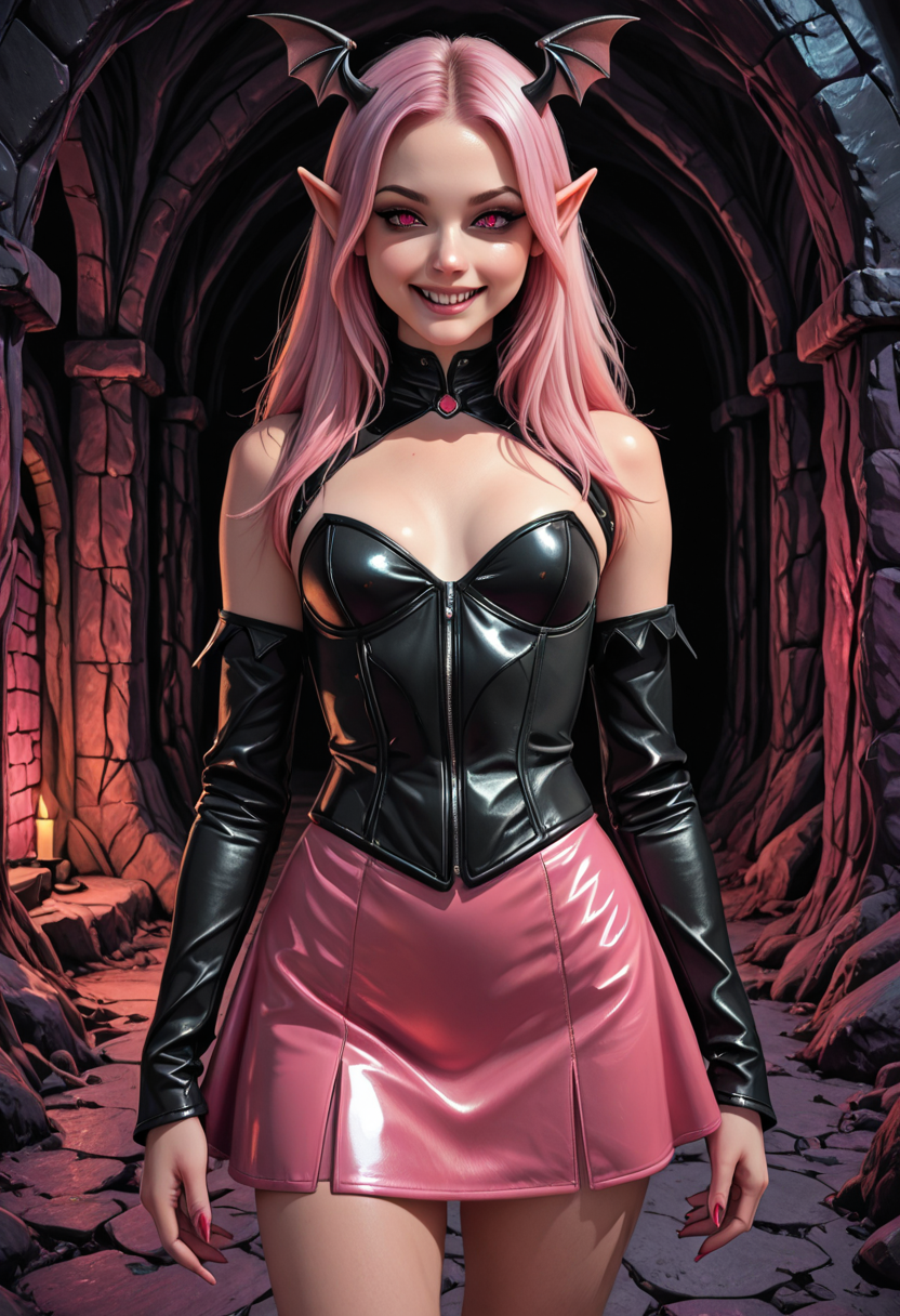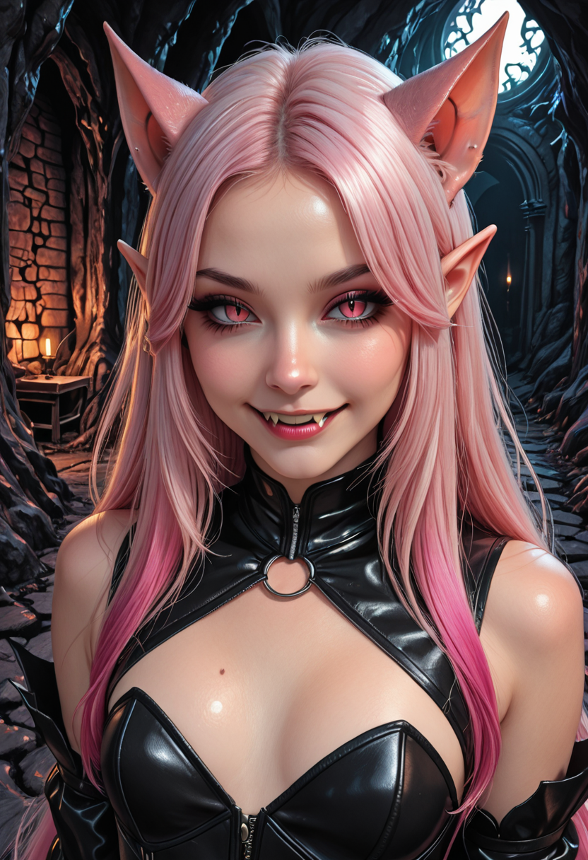 A smaller figure emerged from shadow wearing pink leather that caught amber light—her frame delicate where Vessra's curved generous, her expression playful where her sister's held predatory curiosity. Giggles multiplied through corridor passages, warming the stone around him.