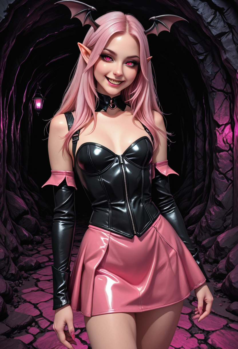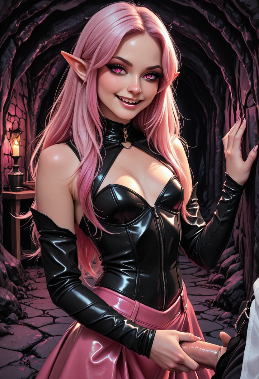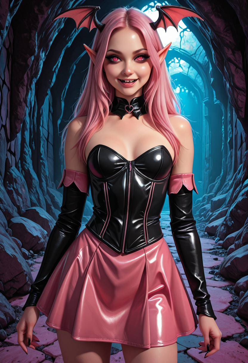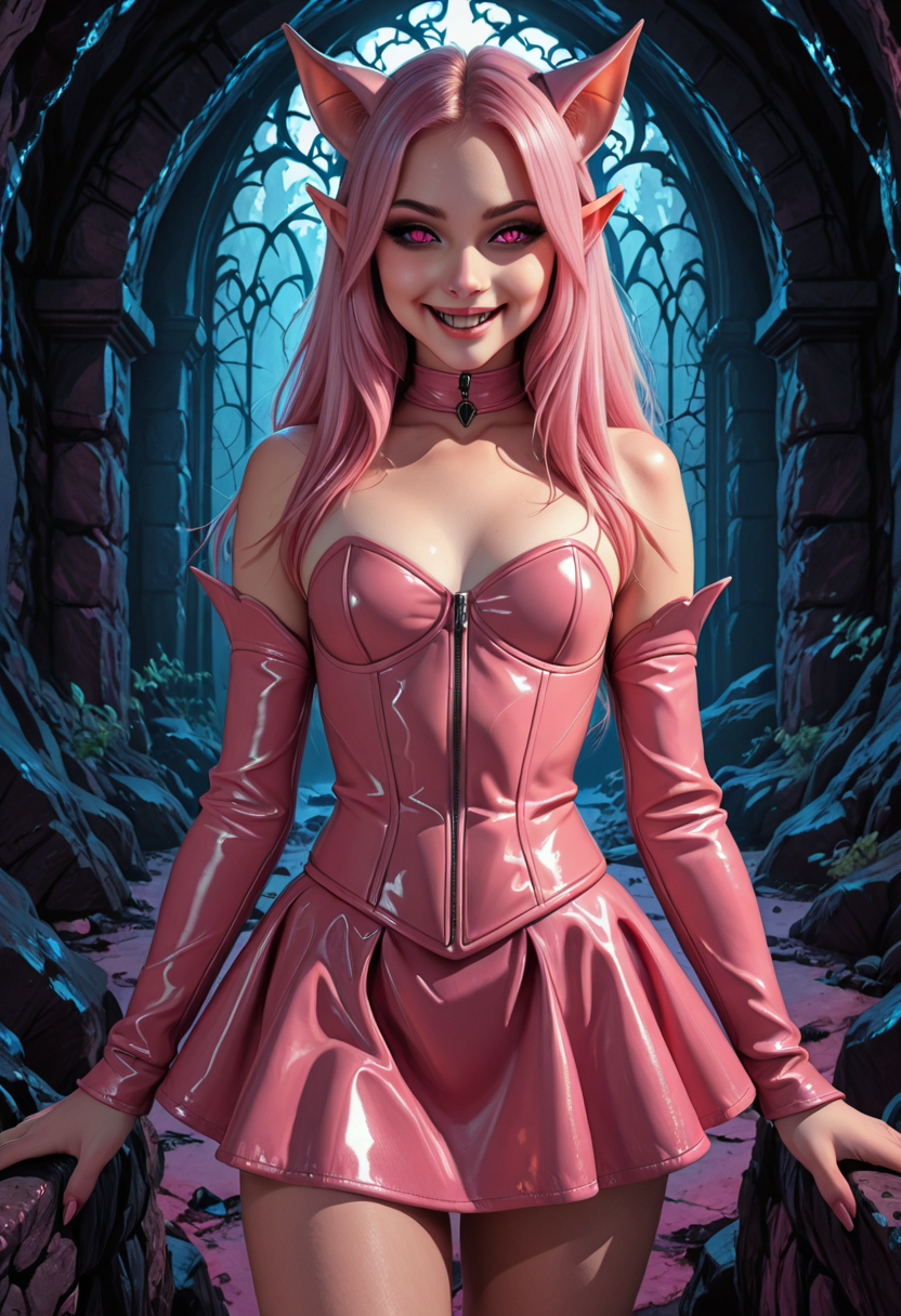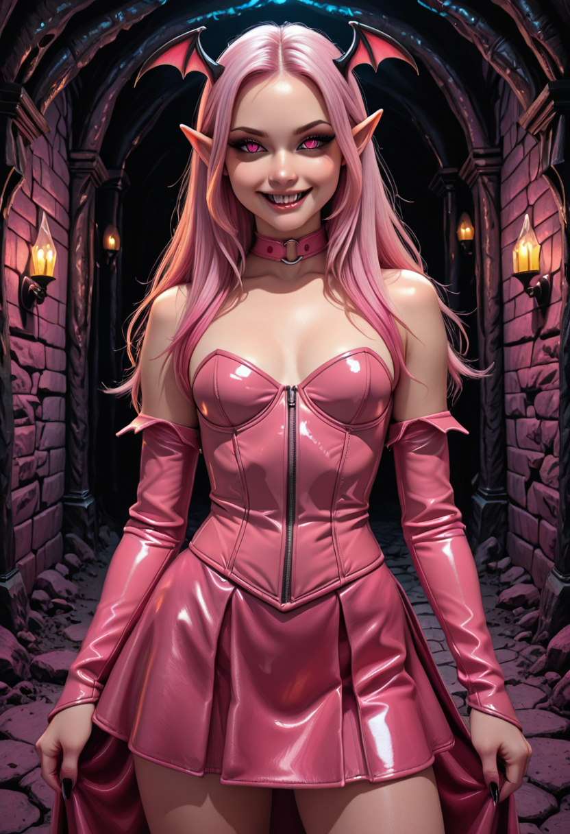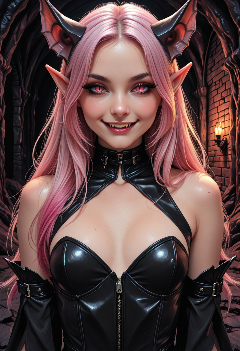 A smaller figure emerged from shadow wearing pink leather that caught amber light—her frame delicate where Vessra's curved generous, her expression playful where her sister's held predatory curiosity. Giggles multiplied through corridor passages, warming the stone around him.