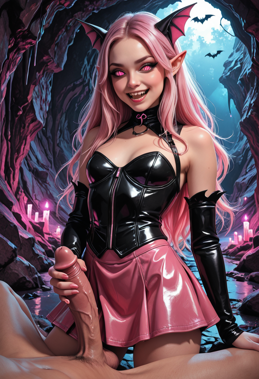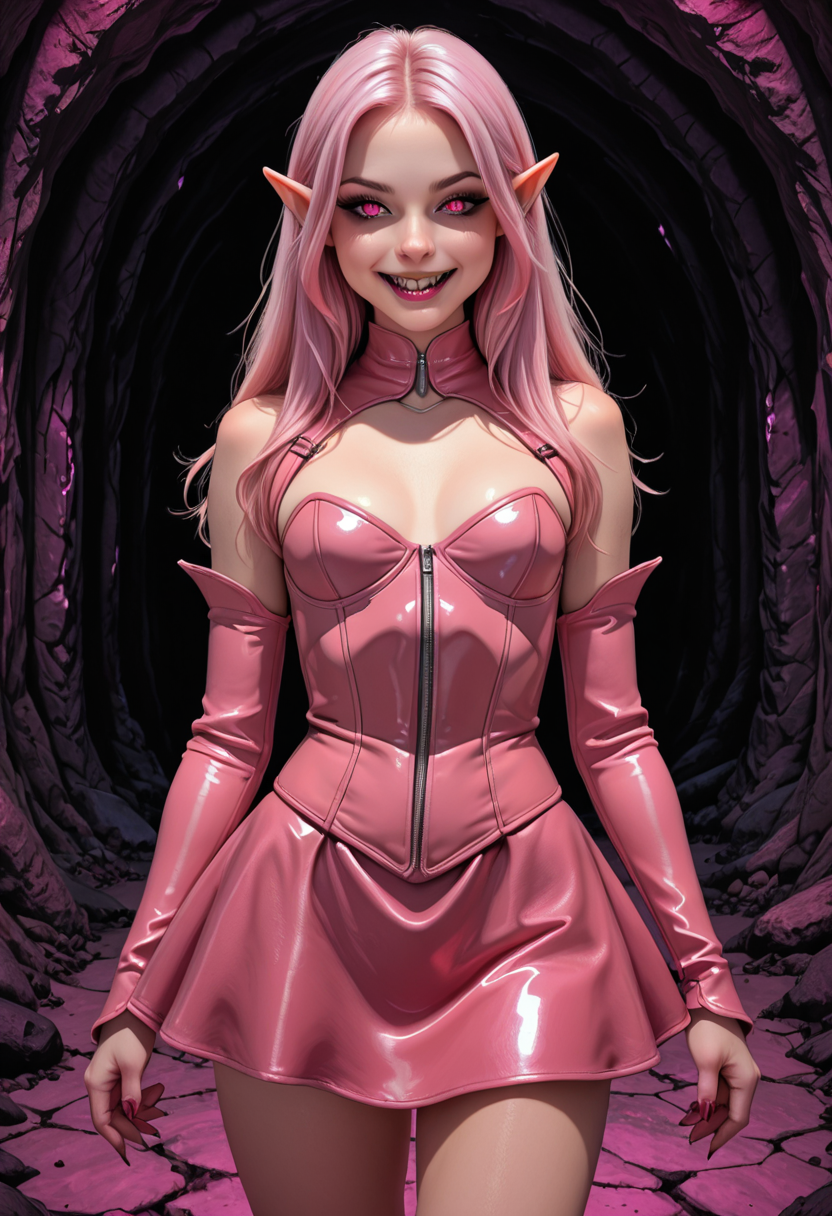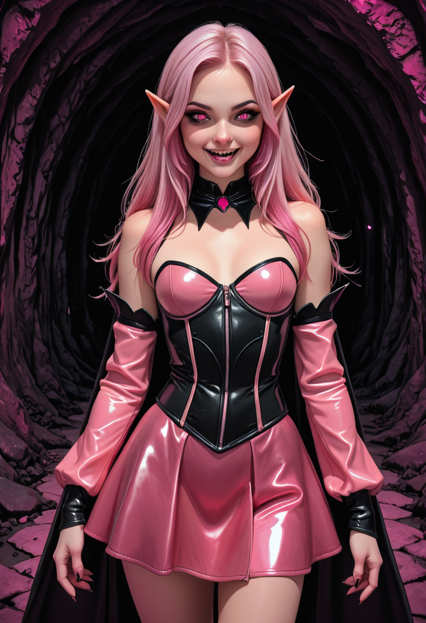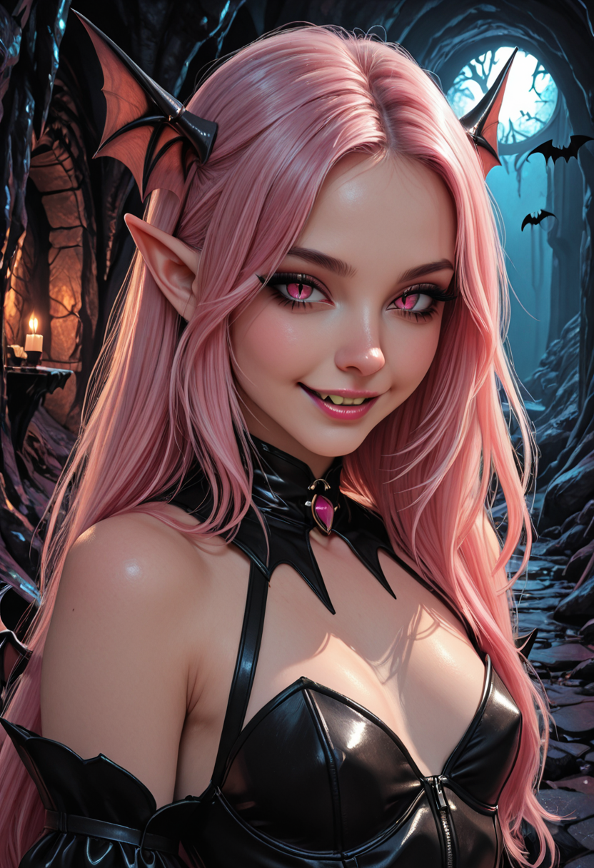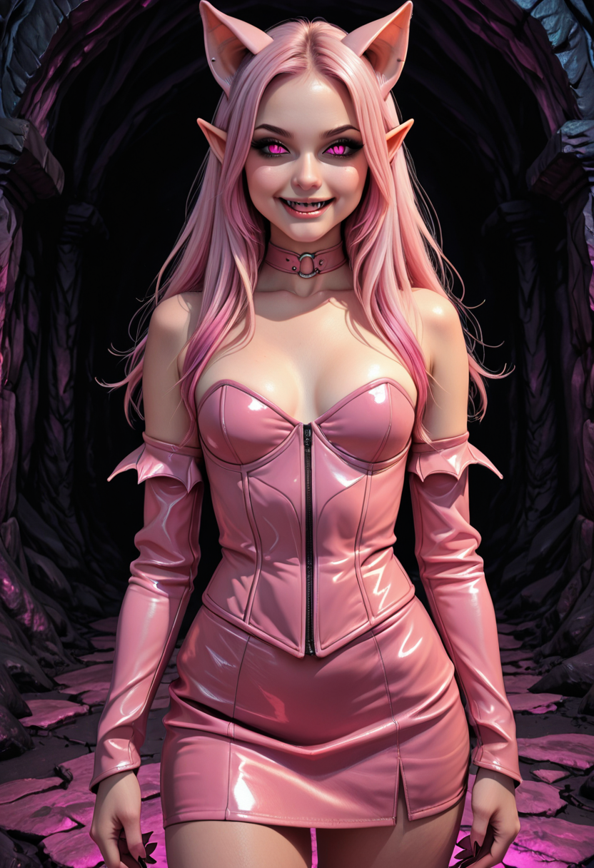 A smaller figure emerged from shadow wearing pink leather that caught amber light—her frame delicate where Vessra's curved generous, her expression playful where her sister's held predatory curiosity. Giggles multiplied through corridor passages, warming the stone around him.
