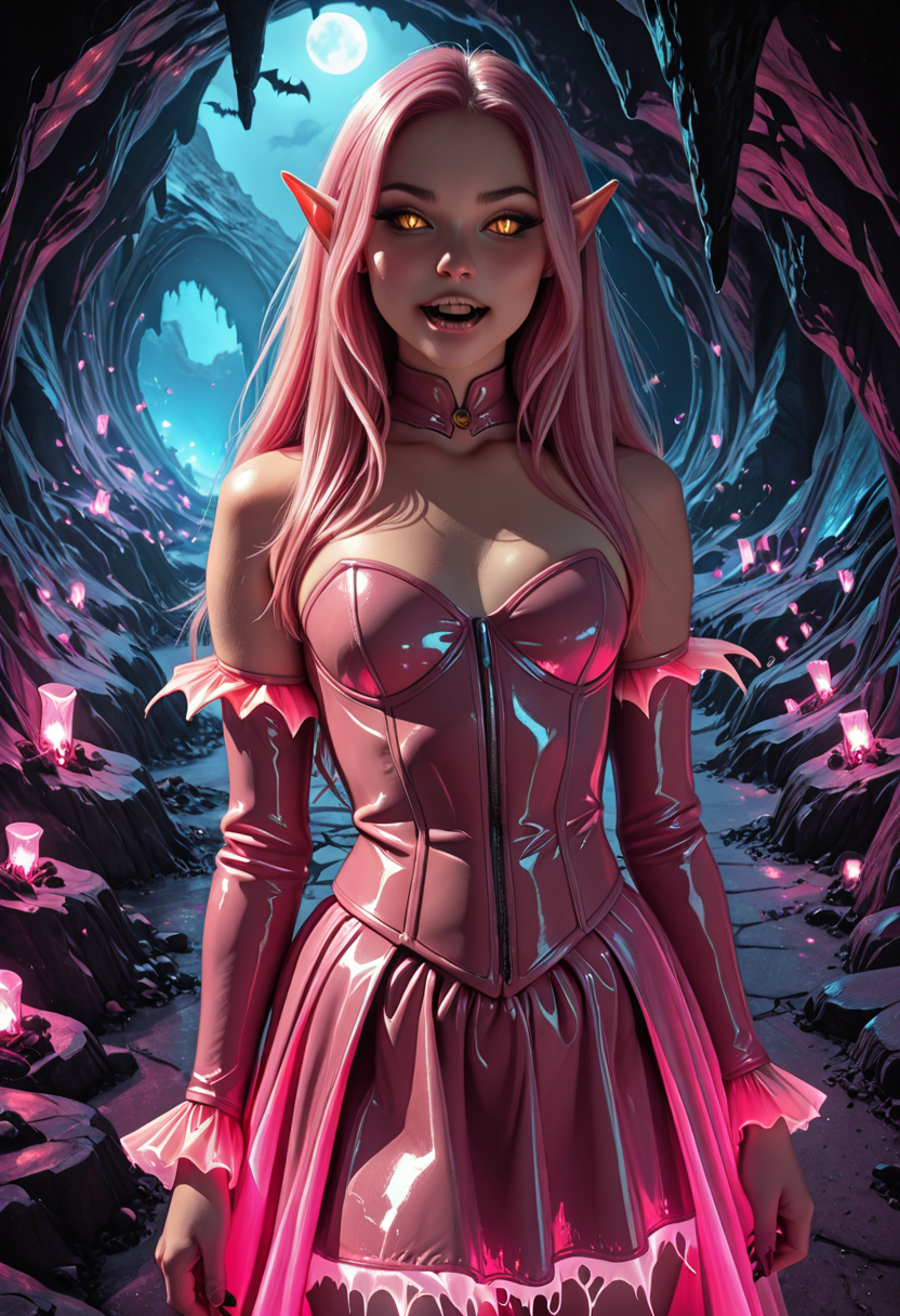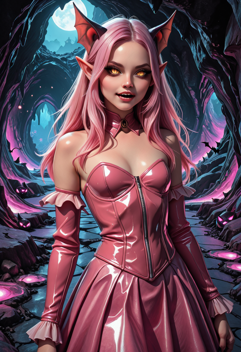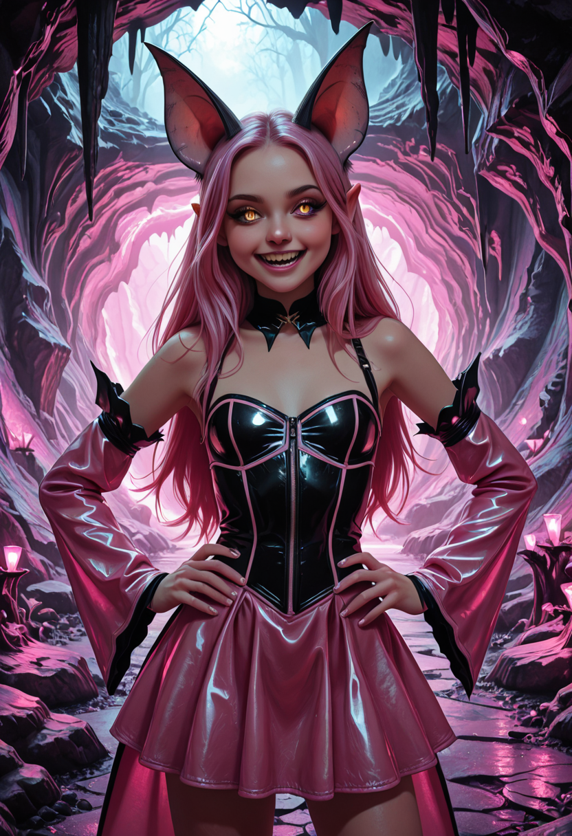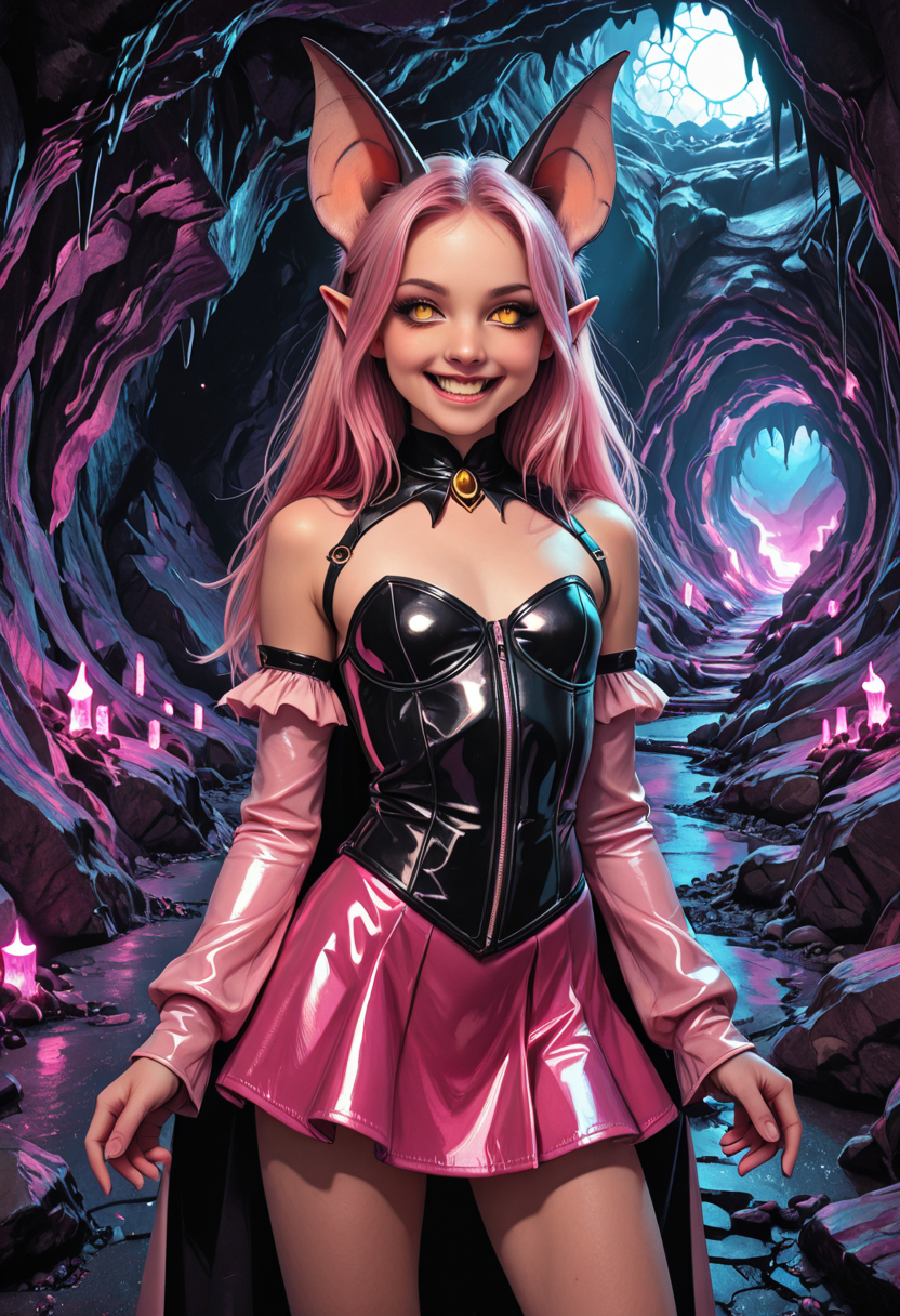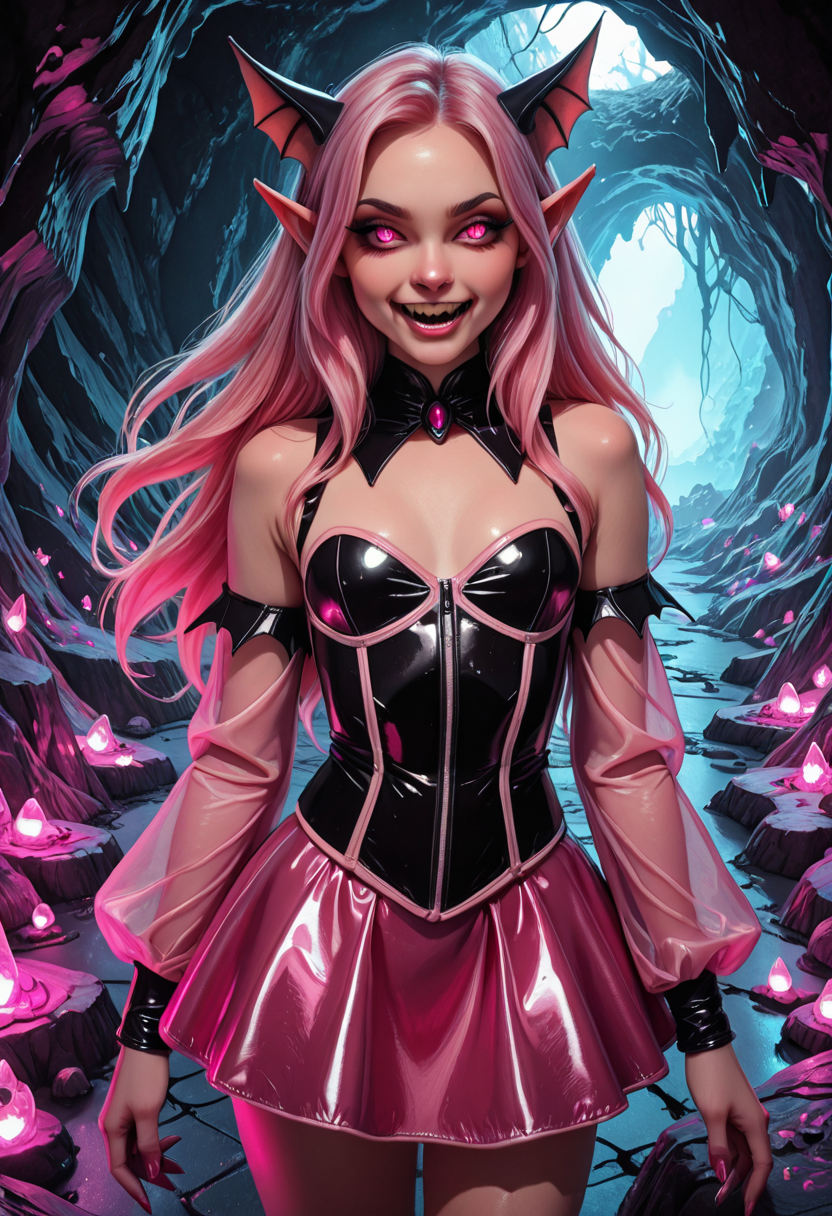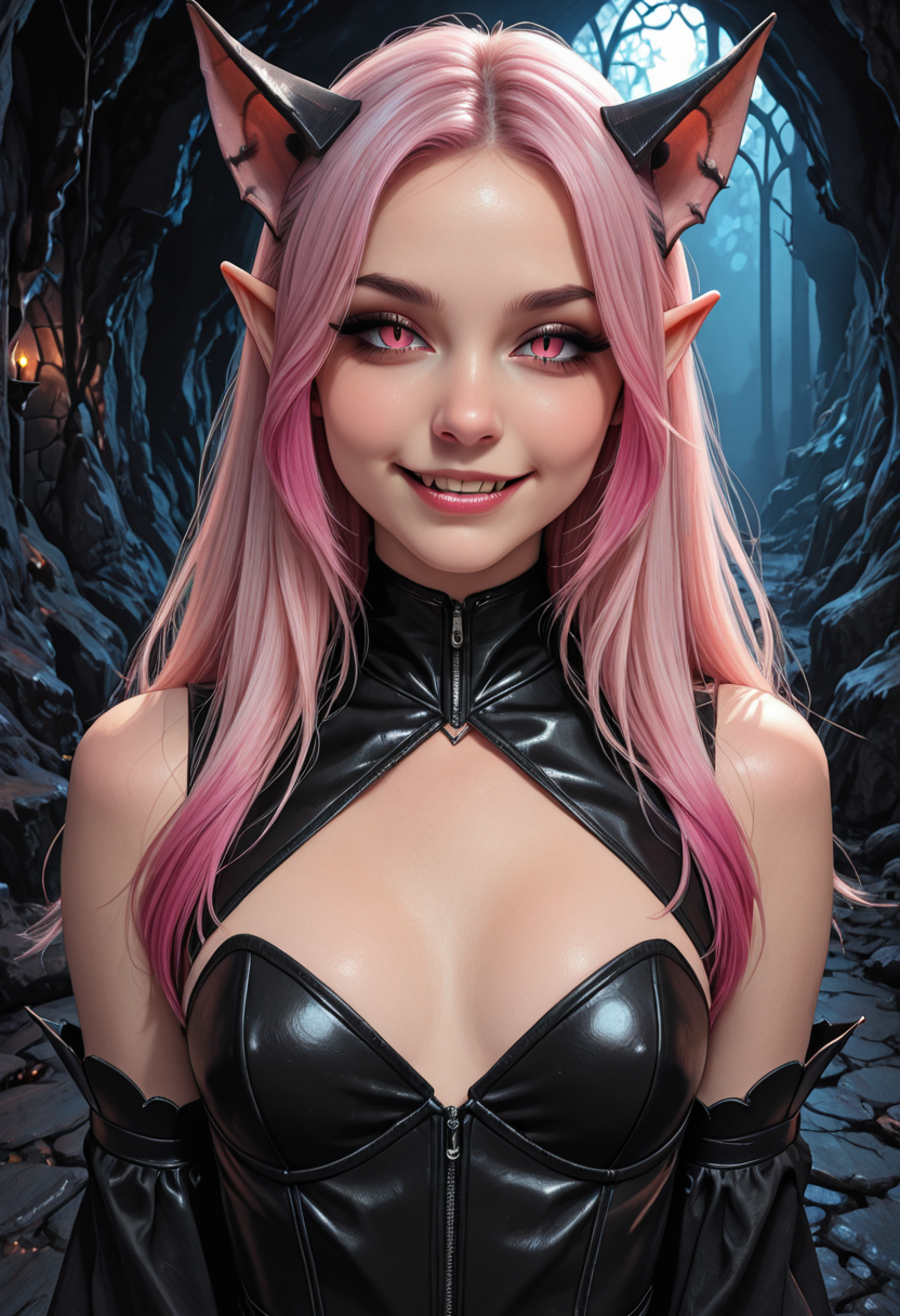 A smaller figure emerged from shadow wearing pink leather that caught amber light—her frame delicate where Vessra's curved generous, her expression playful where her sister's held predatory curiosity. Giggles multiplied through corridor passages, warming the stone around him.
