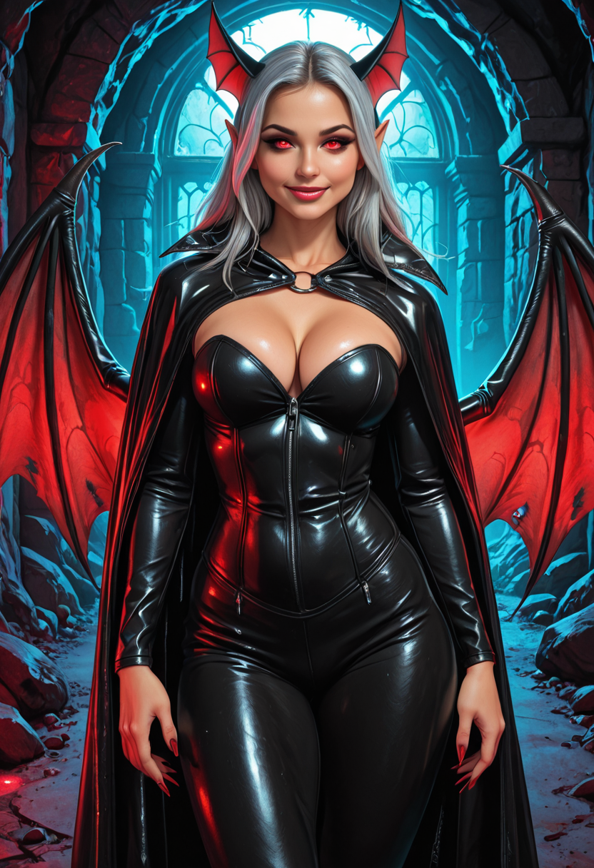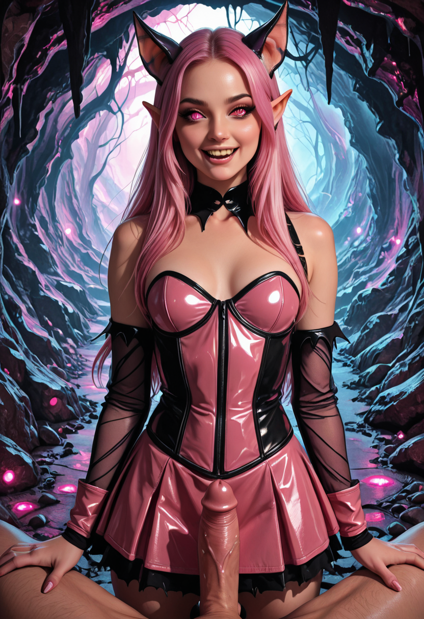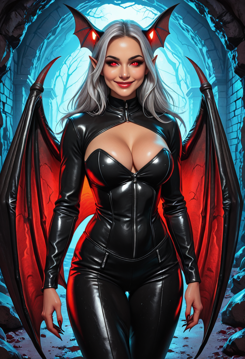 Vessra's laughter merged with his as heat from the wounds she'd left sank through him, her wings folding tighter until the leather pressed him into soft darkness. Myssra moved faster against his pulse, her slender frame pressed flush against his torso as laughter cascaded through stone passages and transformed his struggles into willing movement. "Now you're ours," Vessra spoke against his throat—her smile bright against the bite marks while his hips moved without permission and his hands sank into generous curves instead of finding the exit he'd promised himself. Myssra's grip drew closer, her laughter warming his jaw. "And you're going to show us everything."