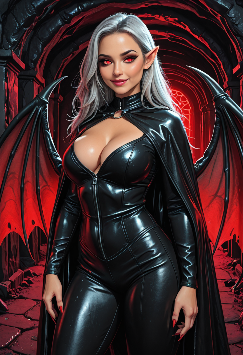 Vessra's fangs pressed into the pulse point he'd offered, her paralytic warm as it flooded through his veins while her giggle vibrated against his throat. His arms refused to push anymore—sinking into soft leather instead as contentment spread through his chest like honey. "Now then," she breathed against his skin, "tell me what you seek in my cave." Her sisters' laughter drifted closer along stone passages, drawing near from shadowed depths while languid contentment clouded his thoughts.