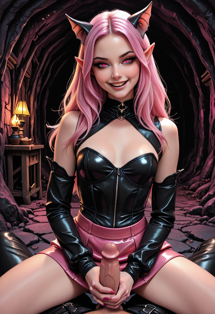 Vessra's wings drew closer around him as her nose trailed along his jaw, giggles echoing from deeper in the corridor. "Offer me something?" Her teeth grazed his pulse with teasing slowness, not breaking skin. "You walked in here with nothing but pollen-soaked lungs—and you want to *bargain*?" Her hand slid lower across his chest, warmth radiating through leather. "Tell me what's deeper in my cave that's worth more than you, warm one. Because right now you're offering me nothing I wasn't already going to take." She leaned back slightly, dark eyes finding his. "What are you actually looking for?"